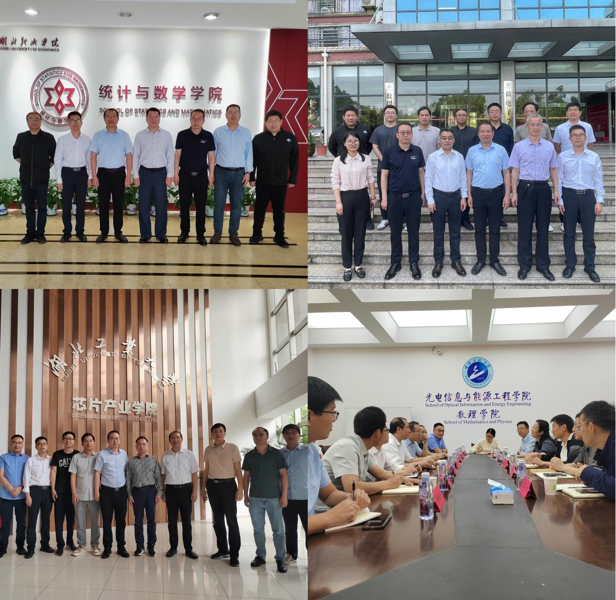 5月7日至8日,数理与光电工程学院院长李建带队先后赴湖北经济学院统计与数学学院、武汉纺织大学数理科学学院、武汉工程大学光电信息与能源工程学院、数理学院、湖北工业大学理学院,就全面落实新一轮本科教育教学审核评估、学科建设、湖北省重点实验室建设、芯片产业学院建设开展深入交流。