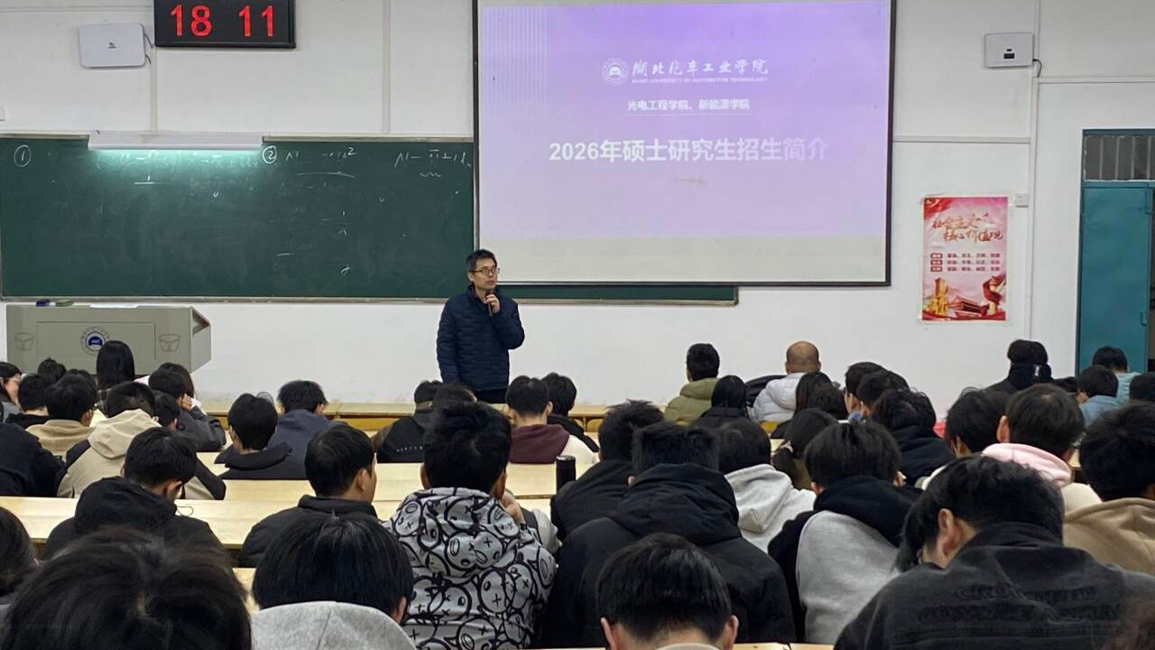 为帮助2026届毕业生明确考研目标、掌握备考技巧,振考研信心,3月9日,光电工程学院、新能源学院在2301教室举办了以“启航"研"途 逐梦未来”为主题的考研动员大会,光电工程学院、新能源学院副院长张传坤主讲,全体22级学生参加。