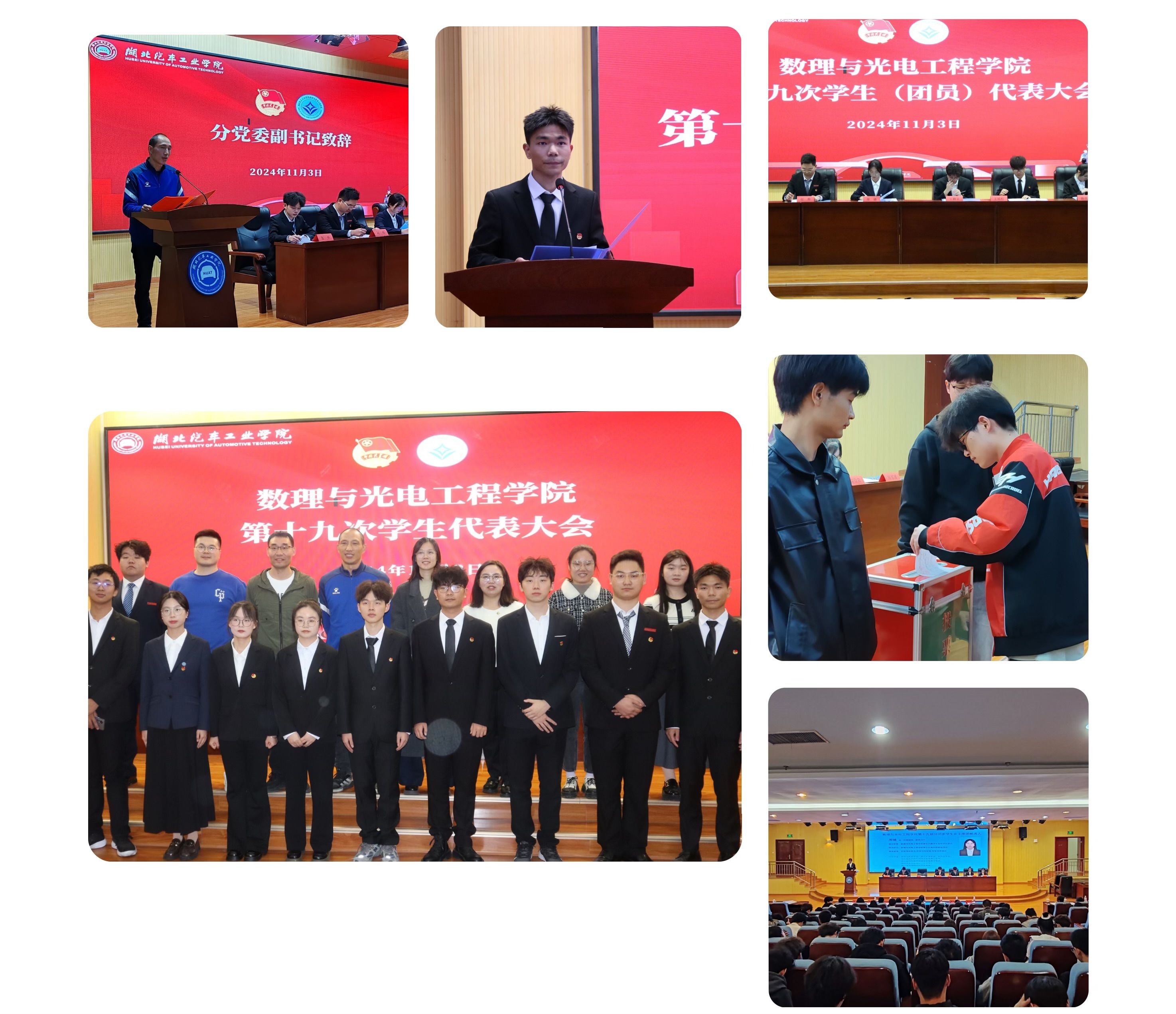 2024年11月3日,湖北汽车工业学院数理与光电工程学院第十九次学生代表大会在图书馆报告厅隆重召开。此次大会旨在全面总结过去一年的学生工作,选举产生新一届学生会主席团。数理与光电工程学院分党委副书记张朋刚、校团委办公室主任鲍洁、学工办主任卢旭、分团委副书记李萌及全体辅导员参会。