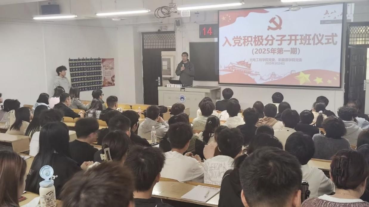为进一步提高入党积极分子的思想觉悟和政治素养,光电工程学院、新能源学院3月24日在1103教室举办2025年第一期入党积极分子培训班,2025年第一期全体入党积极分子参加。