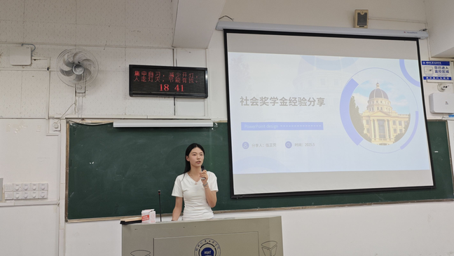 对于低年级的学生,学院邀请社会奖学金获得者许艺、邓诗豪、余静和伍芷荧分享经验,他们用自己的成长轨迹分别从“科研竞赛突破”“高效学习方法”“团体学习氛围”“社会奖学金评选”四个维度分享心得,在科研竞赛方面,邓诗豪以获奖项目的备赛历程案例为引,强调团队协作、主动沟通、跨学科融合的重要性;在高效学习方面,许艺分享了坚持“学业优先”原则,制定“周计划表”严格划分学习与工作时间,保证专业排名始终稳居前列;在团体学习方面,余静讲述了宿舍组团图书馆打卡学习并展示了成果,讲述了集体学习相互促进重要性;在奖学金评选方面,伍芷荧强调了详细解析思想品德、学业成绩、社会实践等指标的权重,建议学弟学妹早规划、勤积累、多对标。