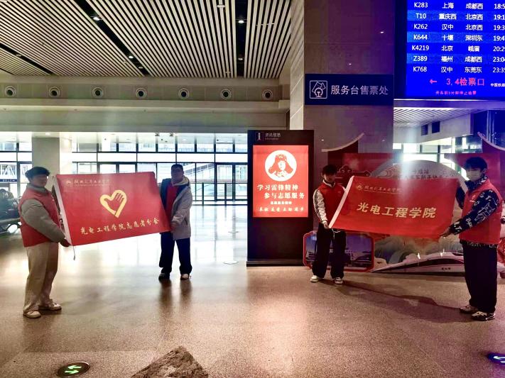 2026年春运期间,湖北汽车工业学院光电工程学院10余名学生组成的“暖冬行动”志愿服务队,在十堰北站分批次开展了为期半个月的春运志愿服务活动。志愿者心怀热忱,主动放弃假期休息时间,坚守在春运一线,用实际行动诠释了新时代青年的责任与担当,为繁忙的春运旅途注入了一股温暖的青春力量。