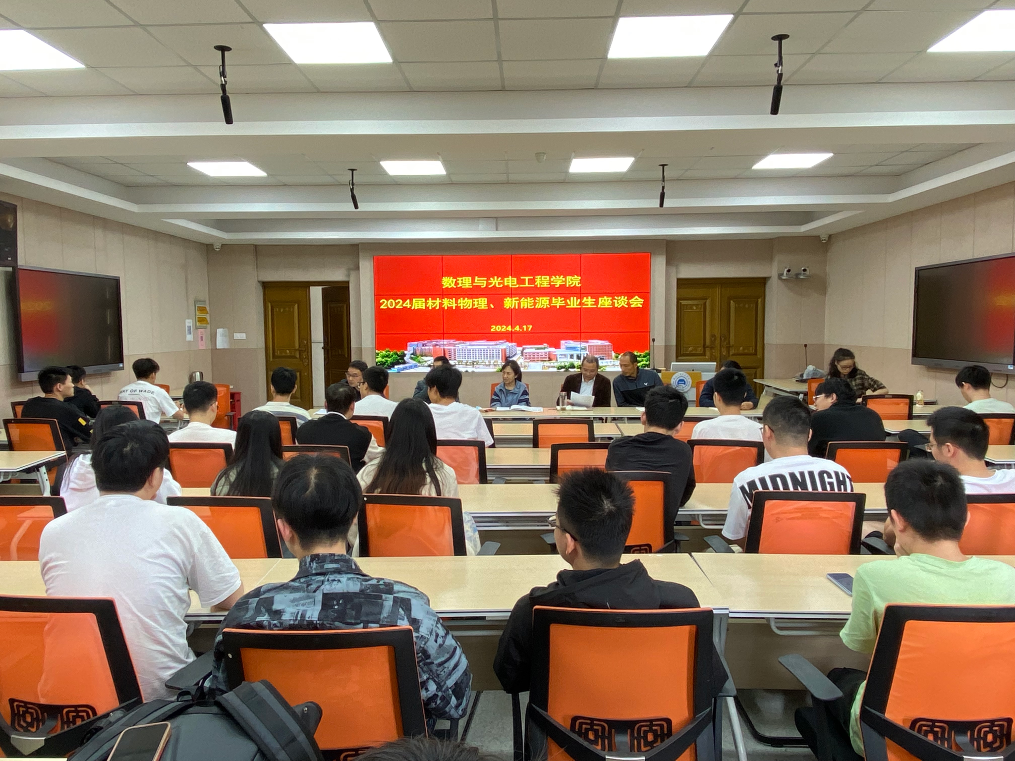 为进一步掌握2024届毕业生学习和就业情况,推动毕业生就业工作,同时了解毕业生对学院发展看法与建议,4月份,数理与光电工程学院分专业、分场次通过线上与线下相结合的方式,与2024届毕业生进行了多场面对面的沟通与交流座谈。学院领导班子全体成员、各系部负责人、毕设指导老师、班主任、辅导员及在校毕业生参加座谈。