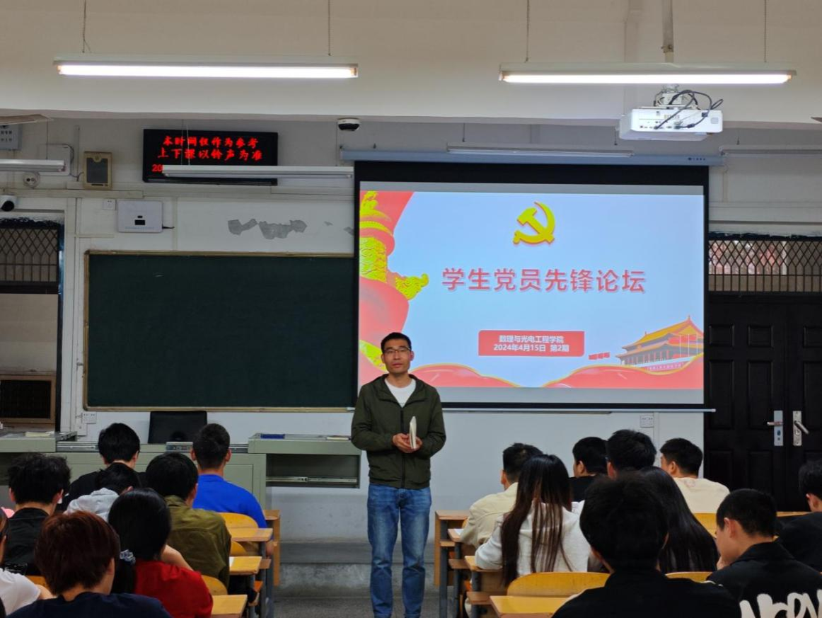 本网讯(文/郭煜)为发挥党员先锋模范作用,宣扬党员先锋事迹,引导入党积极分子们汲取榜样力量、树立示范标杆。4月20日,数理与光电工程学院在一教1205教室开展了第二期党员先锋论坛活动,数理与光电工程学院学生第一党支部书记卢旭、40多名入党积极分子及“青马工程”培训班学员共同参加。