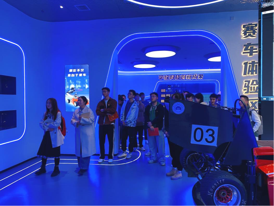 在科创展厅中,50余名党员跟随着讲解员参观了汽院科技创新内容和方程式车队的发展状况,在展览厅内认真观看了文献史料,深入了解了汽院成立的背景、过程和意义,深层次地了解了汽院在科技创新方面的成果。“历史我们需要缅怀,未来我们需要创造,唯有奋斗,才能踔厉奋发,书写华章,作为汽院的莘莘学子,我们要不懈努力,创造更加辉煌的明天!”面对展览厅内的众多“智能制造”,党员们都表出油然而生的尊敬和自豪,激发了党员们的科研梦。