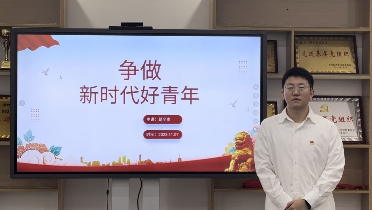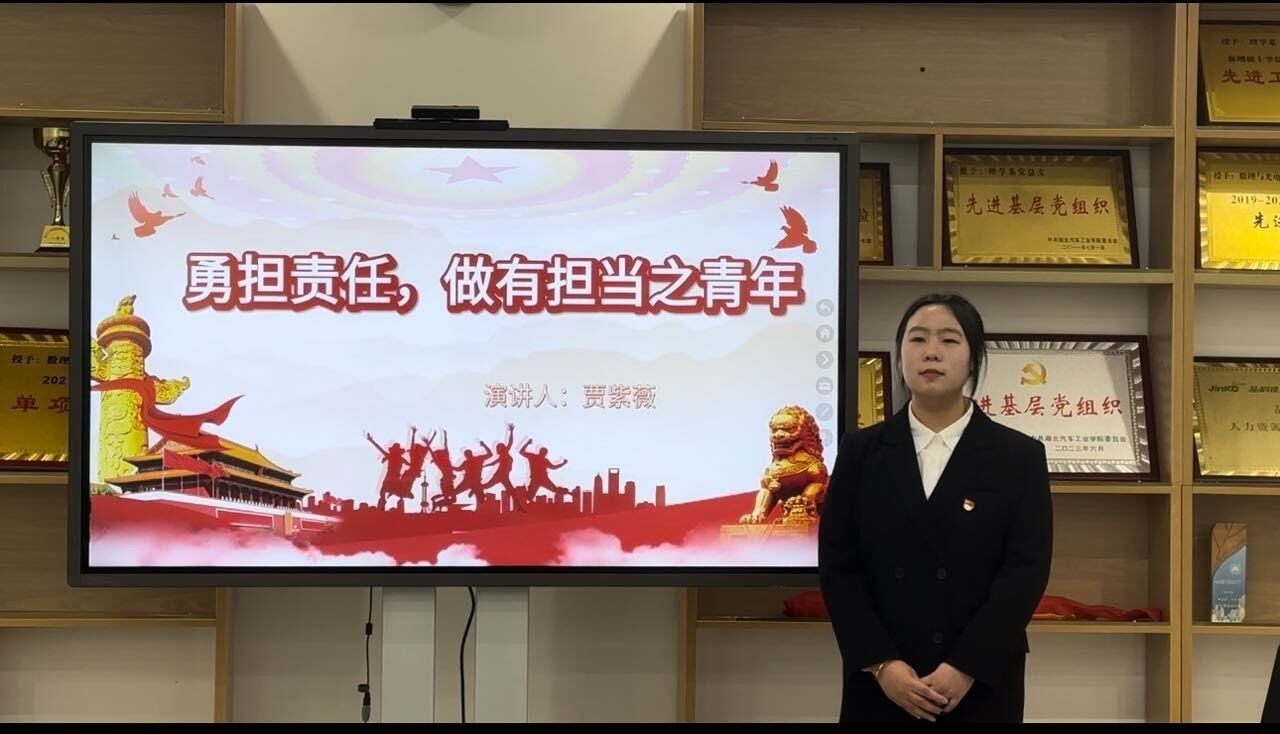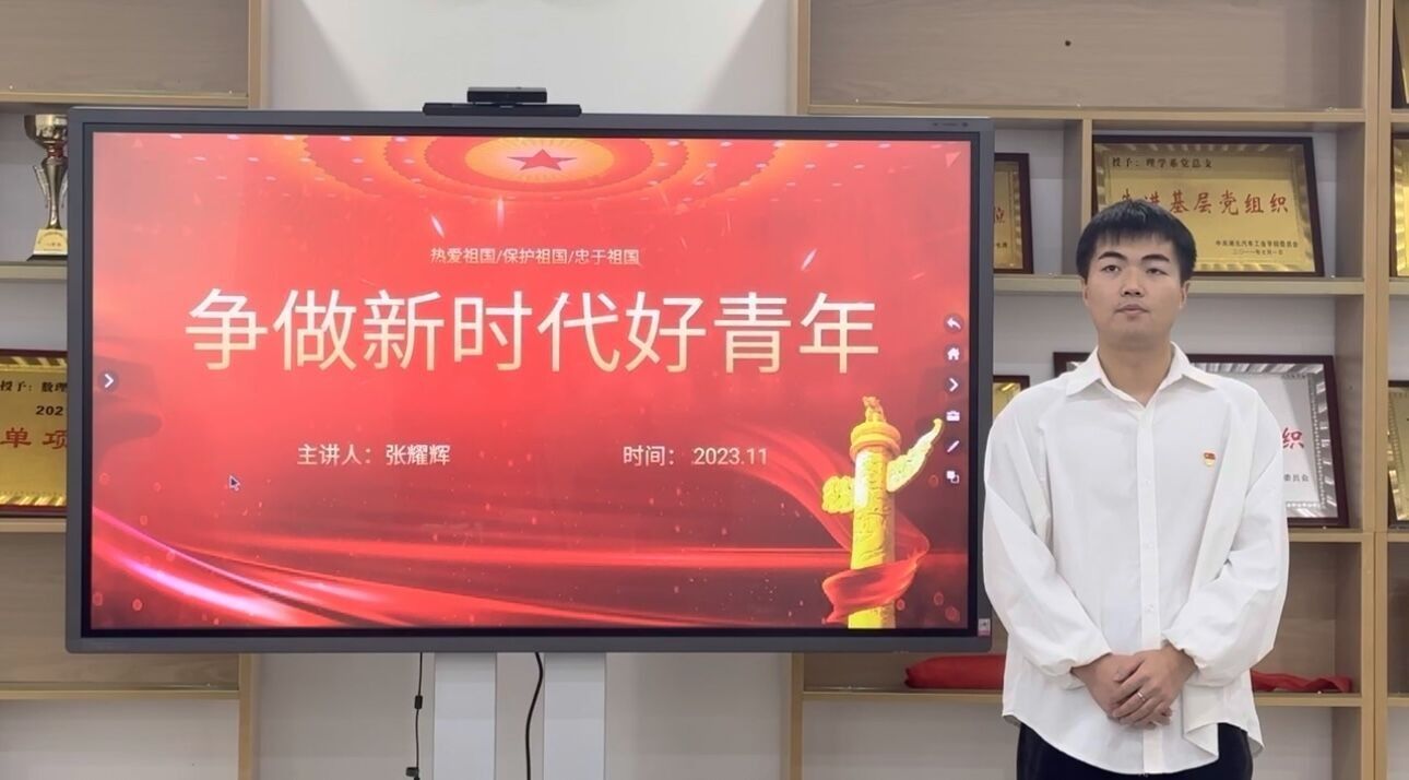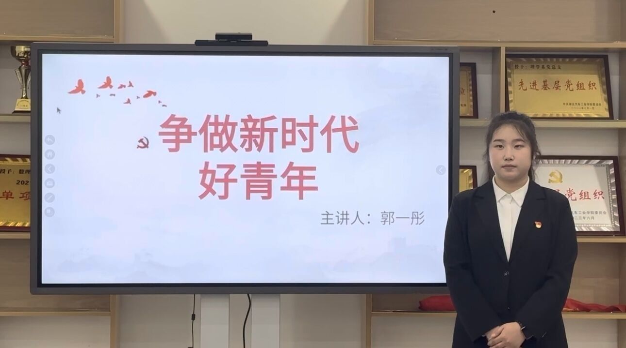 “故今日之责任,不在他人,而全在我少年。少年强则国强,少年富则国富”,学生党员贾紫薇以梁启超的寄托为引,讲述了当代青年需不负时代的使命,不负韶华,勇担责任,做新时代有担当的好青年;学生党员张耀辉则以竹子“咬定青山不放松,立根原在破岩中”表达人无钢骨,安身不牢的精神,激励青年要饱含爱国之情,在新时代发展的征程中,咬定目标,稳定根基,不惧阻挡,勇于付出,做无私奉献的新青年;学生党员郭一彤青年讲述了理想指引人生方向,信念决定事业成败,理想信念就是共产党人精神之“钙”,鼓励青年要将坚定理想信念作为立身之本,做理想之青年;学生党员葛全贵通过“天将降大任于斯人也,必先苦其心志,劳其筋骨,饿其体肤”来表达挫折是成功路上的铺垫,记录成长,只有经历了挫折,羽翼才更加丰满,人生的足迹才更加坚实,鼓励青年在磨难中奋斗,做勇于奋斗的新青年。