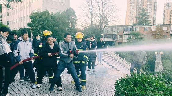 理论授课后,组织进行了实操演练,消防员现场演示了消防设备的正确使用和维护要领后,师生陆续体验进行了灭火器和高压水枪的实地灭火演练,通过演练大家进一步掌握了灭火器的使用方法和火灾应急处置办法。
