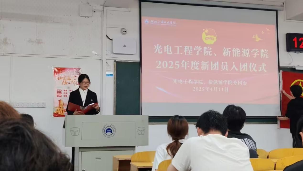 为进一步强化共青团的思想引领作用,引导新团员传承五四精神,坚定理想信念,在新时代浪潮中勇担使命、砥砺前行,光电工程学院、新能源学院团委于2025年4月11日中午在2104教室举办了“新团员入团宣誓仪式”活动。团委副书记李萌老师、学生干部、入团积极分子、新老团员代表参加此次活动。