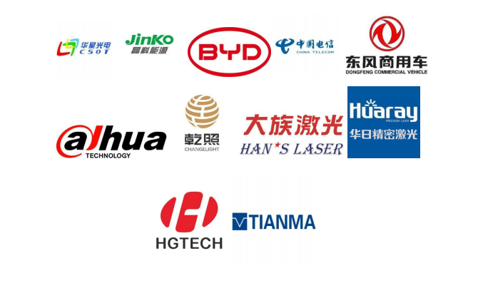 代表企业包括:武汉华星光电技术有限公司、浙江晶科能源有限公司、比亚迪股份有限公司、中国电信股份有限公司、东风商用车有限公司、浙江大华技术股份有限公司、厦门乾照光电股份有限公司、大族激光科技产业集团股份有限公司、武汉华日精密激光股份有限公司、武汉华工正源光子技术有限公司、武汉天马微电子有限公司、武汉安扬激光技术股份有限公司等。