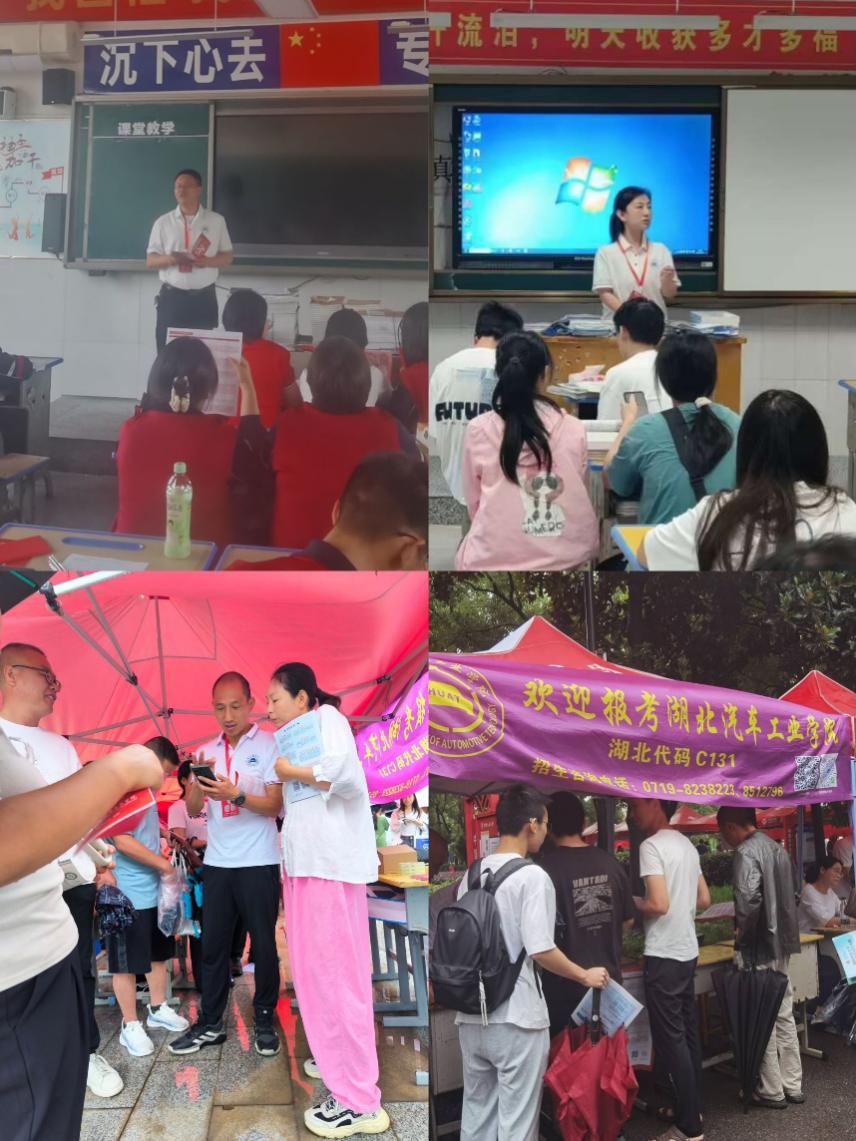 为做好2025年高考志愿填报期间招生宣传工作,6月25日至28日,光电工程学院、新能源党委书记张默、院长熊永臣、党委副书记张朋刚带队赴天门、仙桃、潜江、竹溪等地开展2025年本科招生宣传工作,17位招生宣传教师走进竹溪一中、天门实验高中、仙桃第七中学等13所生源高中,面对面为学生及家长现场开展高考志愿填报指导服务,并宣传介绍湖北汽车工业学院2025年本科招生计划以及招生政策。