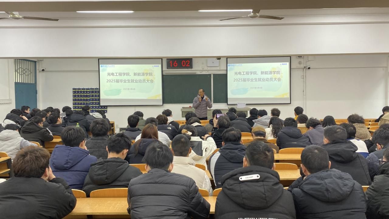 为扎实推进2025届毕业生就业工作,光电工程学院、新能源学院3月4日在5204教室召开毕业生就业动员大会。分党委副书记张朋刚、全体辅导员、毕业班班主任及校本部学院全体2025届毕业生参会。