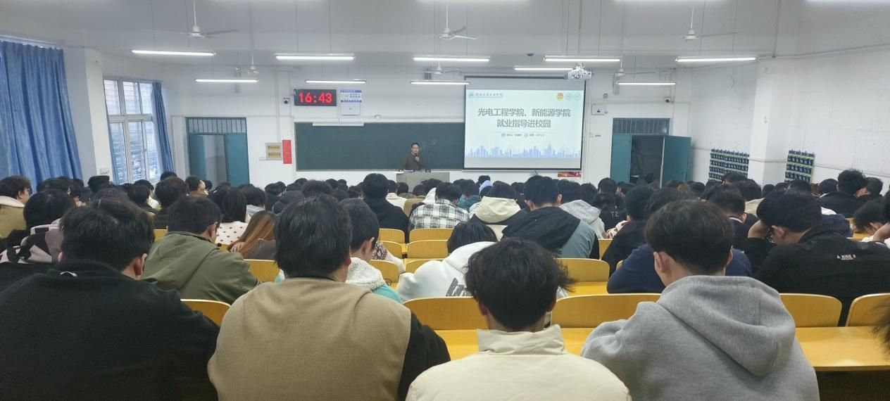 为帮助在校学生了解就业形势,树立正确的职业观、提升求职竞争力,11月23日下午,光电工程学院举办“就业指导进校园”专项活动。学院全体辅导员、2026届及2027届毕业生共同参与此次活动,活动特别邀请到十堰灵鹏教育科技有限公司负责人李鑫武现场为同学们带来一场干货满满的就业指导分享。