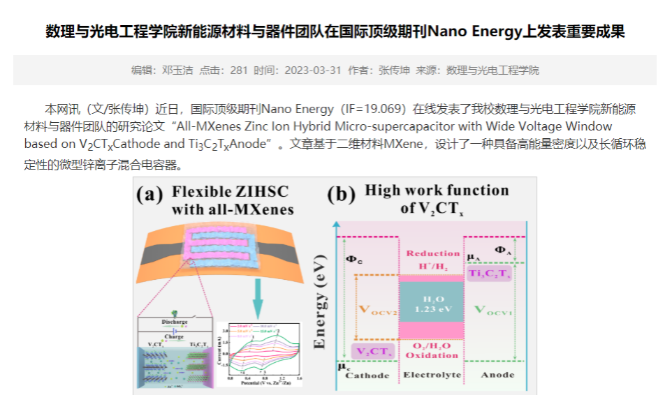 2023年2名硕士研究生获得“研究生国家奖学金”,2篇研究生毕业论文获得校级“优秀硕士论文”,4名研究生获得校级“优秀毕业研究生”;硕士研究生持续高质量就业,继续攻读博士学位2人。全年硕士研究生产出高水平科研成果12项,其中SCI论文11篇。学院研究生以第一作者身份在国际能源顶级期刊《Nano Energy》(IF=19.069)、TOP期刊《Chinese Journal of Physics》(IF=5.0,JCR Q1期刊)分别发表论文1篇。