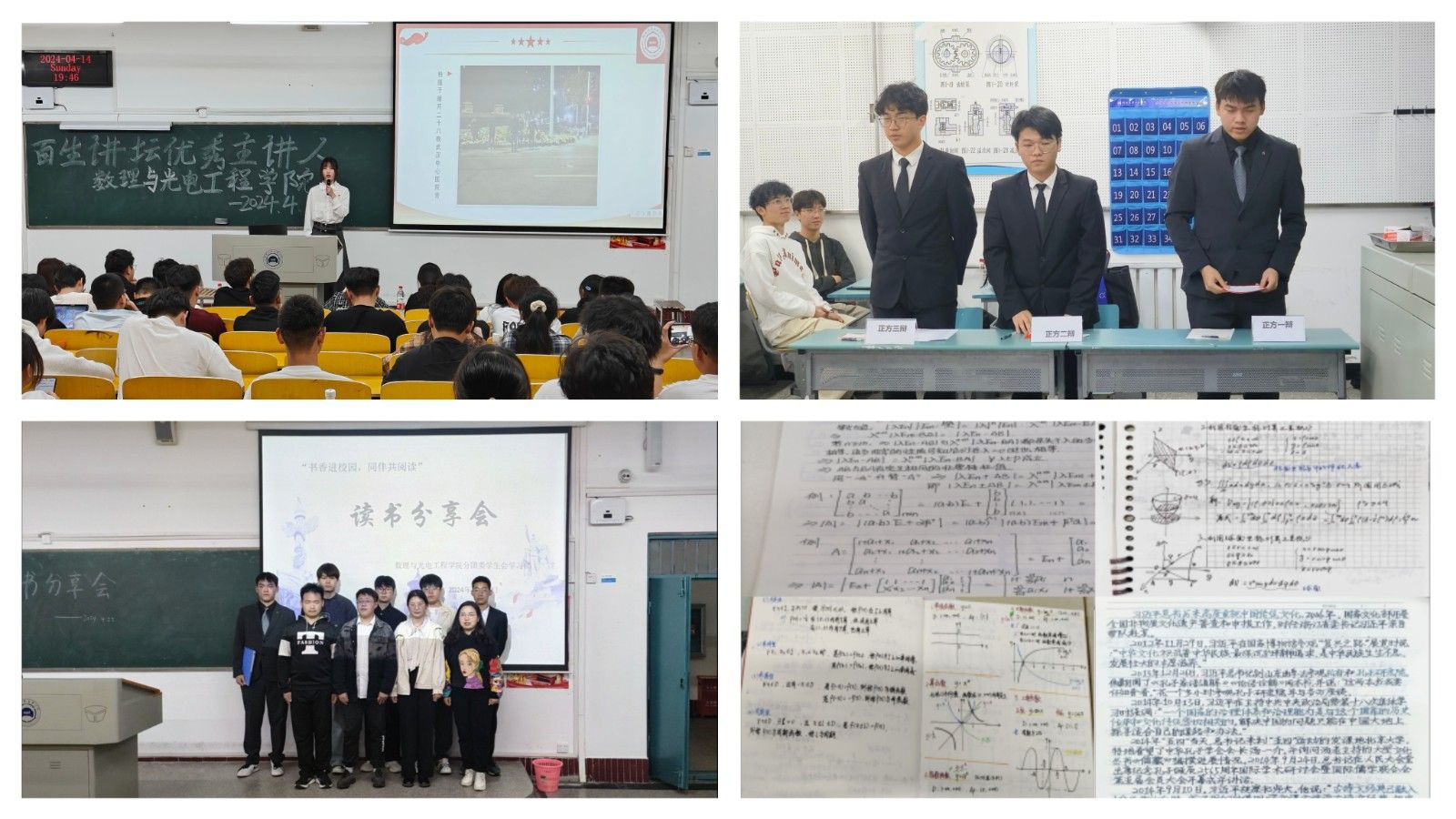 数理与光电工程学院积极响应“悦学习·跃青春”系列主题活动,将第一课堂与第二课堂充分融合,围绕学风建设开展“‘青春思辨·未来之声’辩论赛”“百生讲坛优秀主讲人选拔赛”“最美笔记评选”“图书馆打卡活动”“‘以书为伴·共享经典’读书分享会”等活动,引导学生养成良好学习习惯,提升学习效率和学习质量。