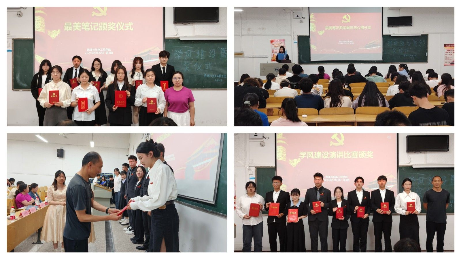 数理与光电工程学院充分发挥榜样的先进模范和示范引领作用,通过组织评选“学习标兵”“进步之星”和“优良学风班”,宣传优秀学生先进事迹,开展最美笔记展示,学风成果展示演讲和学风建设月颁奖仪式等活动,用身边人讲身边事,身边事教身边人,激励学生积极向身边榜样学习,激发学生学习的内生动力,助推学院形成学习优秀、争创先锋的良好氛围。
