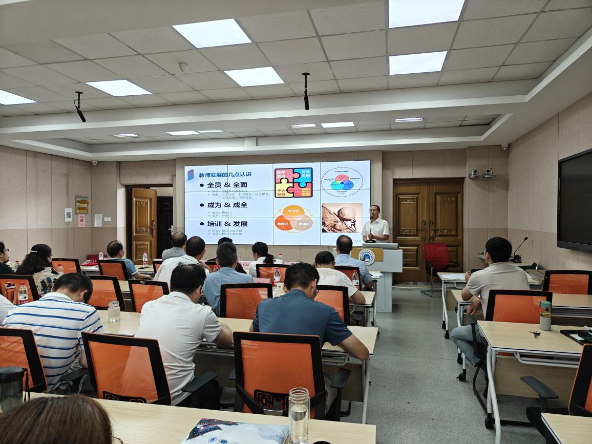 郭一鸣对数理与光电工程学院教师发展分中心的成立表示祝贺,并受邀作教师发展主题报告,从教师发展的内涵入手,详细阐述了学校教师发展的工作愿景和培训体系,并对教发分中心的建设提出了相关建议。