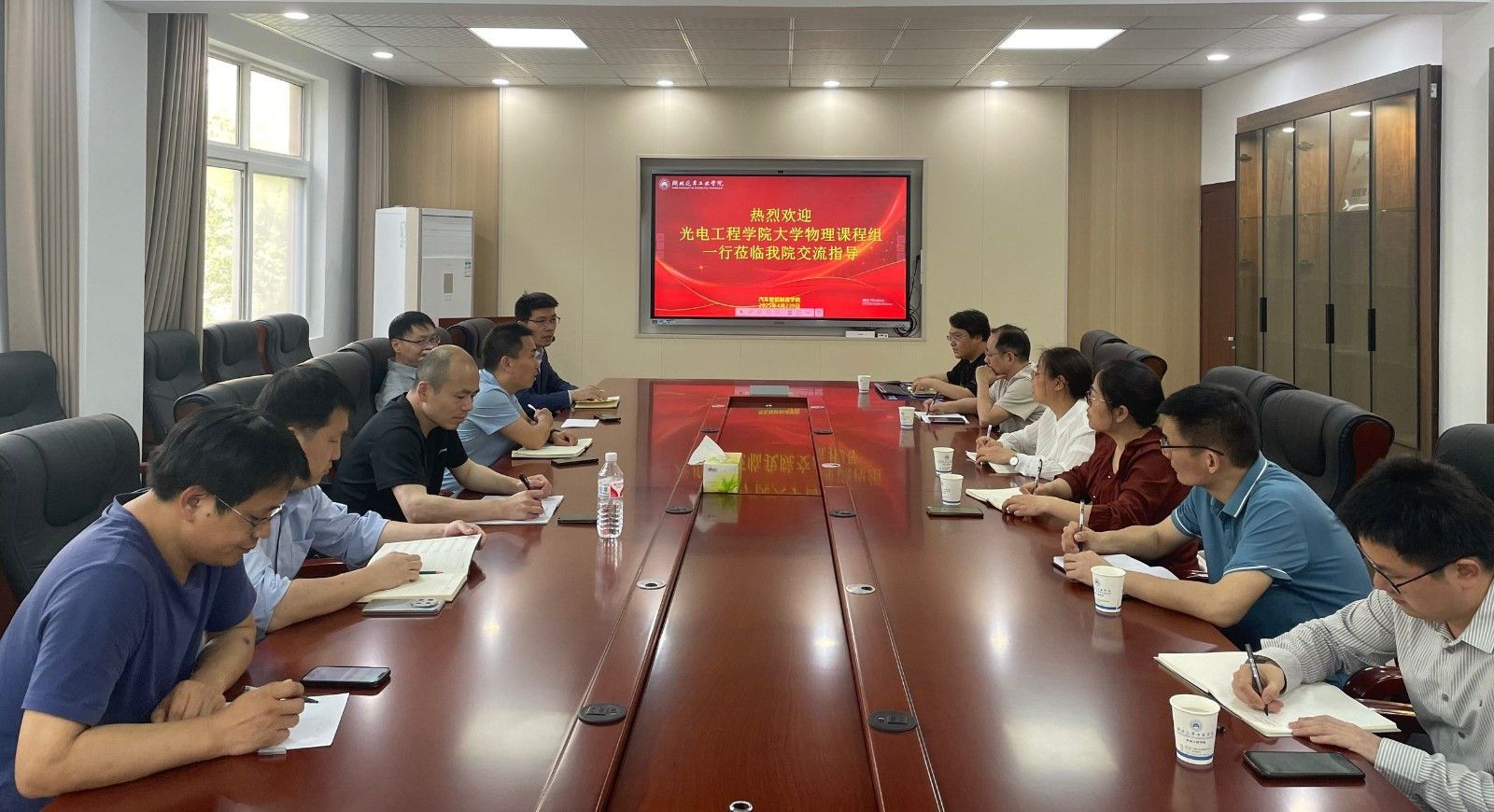 4月23日下午,在光电工程学院、新能源学院领导的支持下,公共物理教学部副主任张俊带领物理教学团队成员一行6人到汽车智能制造学院,调研学院各专业师生对物理类课程的教学改革和教学大纲修订的建议。汽车智能制造学院副院长王宸、智能制造系主任王永泉、机电工程系主任袁海兵、工业工程专业负责人李峰、机械设计系副主任孙国兴及仪器科学与技术系教师徐作为参加了本次座谈会。