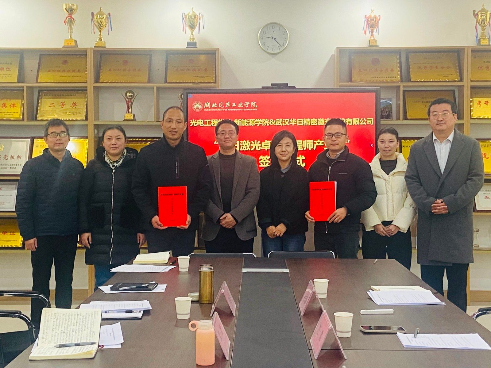 12月5日上午,光电工程学院与武汉华日精密激光股份有限公司共同举办了“华日激光卓越工程师产业班”暨校企合作签约仪式,武汉华日精密激光股份有限公司技术管理部经理汪霈、管理中心总监李旭红、人力资源部招聘经理余文静,我校光电工程学院党委书记张默、院长熊永臣、汽车商学院副院长胡姜、光电工程学院副院长张传坤及光电信息科学与工程专业负责人和相关老师参加活动,签约仪式由副书记张朋刚主持。