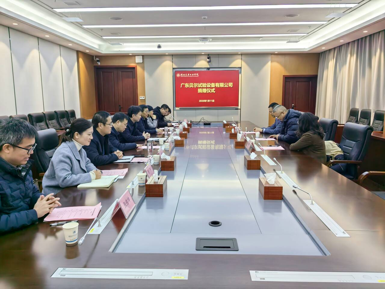 1月11日,广东贝尔试验设备有限公司董事长、我校98级工商管理系杰出校友崔克军,公司法人代表林海珍,湖北区总经理闫智竟一行来校,在产教大楼三楼多功能会议室举行捐赠签约仪式。仪式由光电工程学院、新能源学院、汽车未来技术学院院长熊永臣主持。